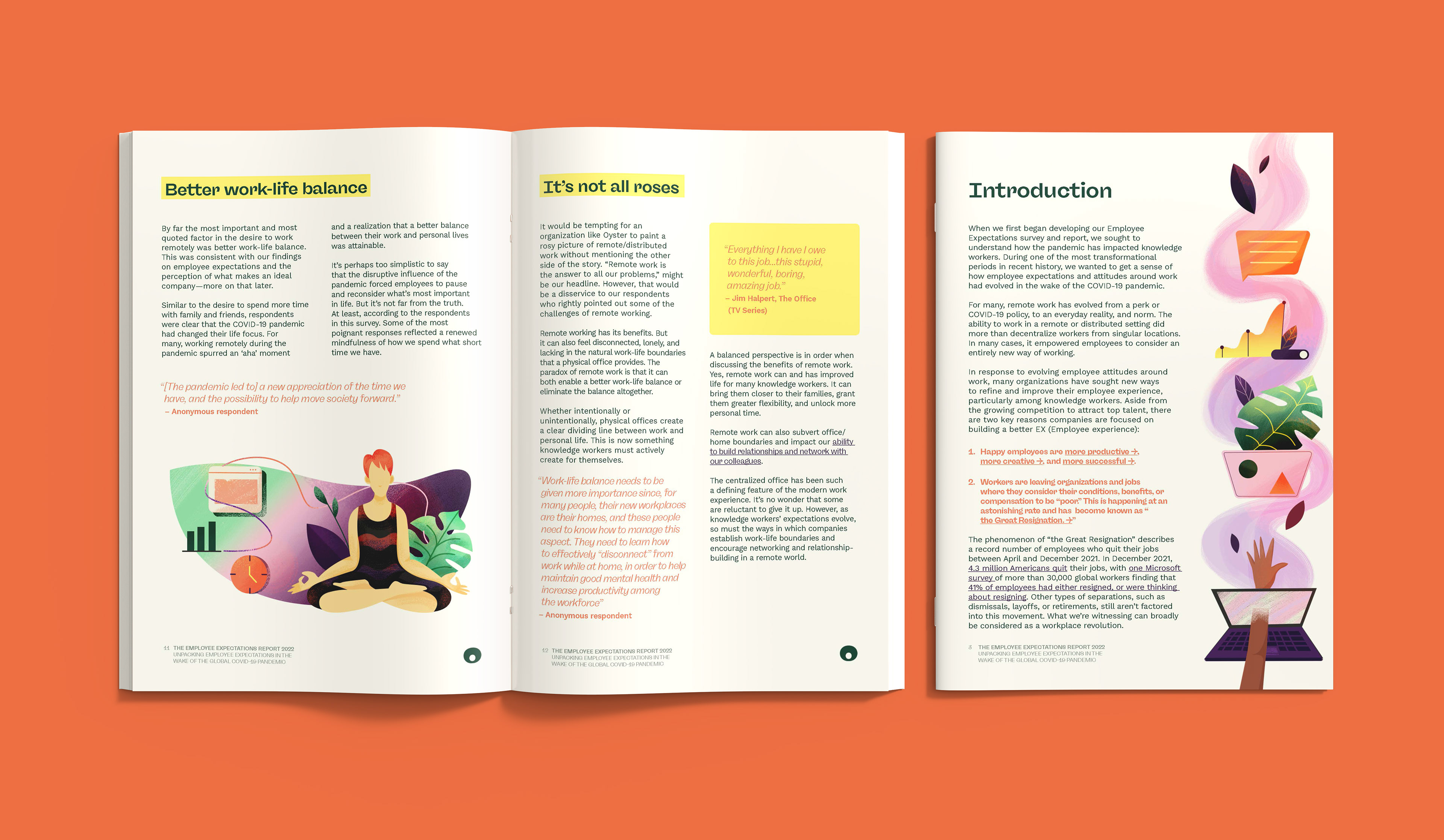 Illustration and Design for the report 2022 for the Oyster brand during my time working at Superside,
